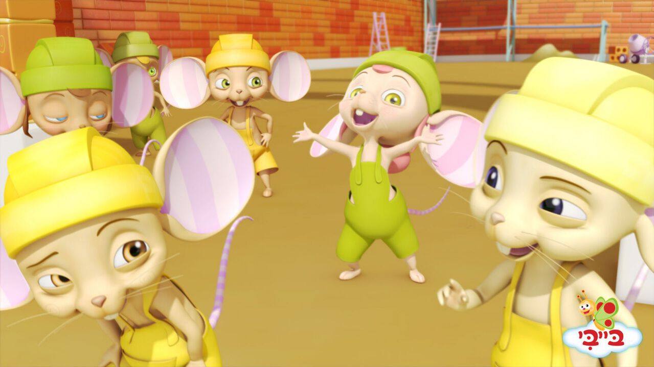 עכברים בנאים - פרק 85 הרפתקאותיהם של חבורת עכברים חרוצה שמקימה בית גדול. כשמגיע שליח עם חפץ חדש ועטוף לבית הנבנה, כל העכברים מנסים לנחש מהו החפץ החדש. כ' עב'. מדובב. ש.ח.